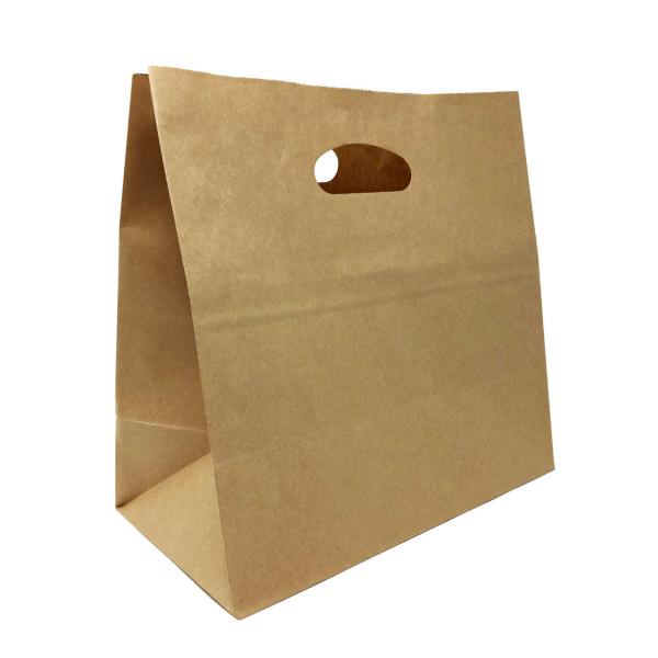 These Kraft Paper Bags with Die Cut Handles are simply classic! Made from tear resistant die cut Kraft Paper, these bags are a natural and organic way to package goods and are perfect for food and takeout. No more nasty rips and spills – these bags are designed with robustness in mind with plastic reinforced handles! Perfect for any business.